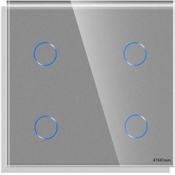LUXION négyes üveg érintőkapcsoló panel, üveg vagy alumínium kerethez, kristályüveg, kompatibilis a Luxion modulokkal. A LUXION termékeket kompakt, elegáns és minimalista kialakítás jellemzi. Praktikusak, minőségi és tartós anyagokból készültek, használhatóságot és kényelmet kínálnak otthonának. Csak LUXION modulokkal kompatibilis, üveg vagy alumínium sorolókerethez