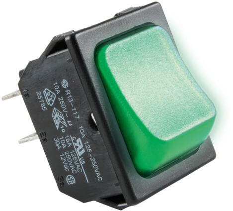 Somogyi Elektronic Világítós billenőkapcsoló, 250V, 2ák, zöld (STV 02) Termékinform áció: A STV 02 világítós billenőkapcsoló 2 állású és 2 áramkör működtetésére alkalmas. A kapcsoló glimm típusú fényforrással rendelkezik. Max. terhelhetősége: 250 V~ / 6 A Mérete: 32 x 26 mm Beépítési mérete/nyílása: 31 x 22 mm Beépítési mélysége saruval: 27 mm Saruk szá