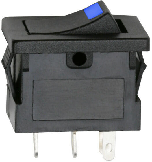 Billenő kapcsoló 1 áramkör 15 A - 12 V DC OFF-ON kék LED-del Beépíthető fekete billenőkapcsoló, amely kék LED fénnyel jelzi a bekapcsolt állapot, így távolról is könnyedén ellenőrizhető a státusz. Széles körben alkalmazható, elektromos berendezések, járművek kezelőfelületén. 1 áramkör 15 A - 12 V DC ON - OFF Kék LED-del Figyelem! A kapcsolóba épített LED teljese