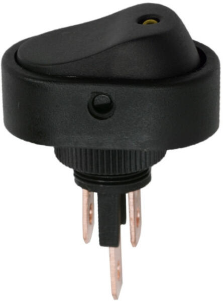 Billenő kapcsoló 1 áramkör 20 A - 12 V DC OFF - ON sárga LED-del Beépíthető fekete billenőkapcsoló leddel. Széles körben használt, ideális lehet autóban, elektromos eszközök kezelőpanelján. A visszajelző lednek köszönhetően könnyen megállapítható a kapcsoló státusza. 20 A / 12 V DC ON - OFF Sárga LED-del Kapcsoló típusa:SPSTÁramerősség:20 A / 12 V DCBeépítési