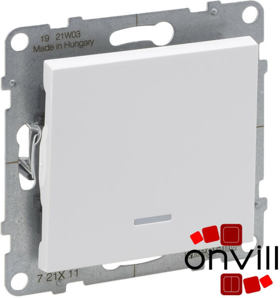 Egypólusú kapcsoló jelzőfénnyel IP44 10 AX - 250 V~ Alacsony fogyasztású (0,125 mA) LED lámpával szállítva (764526) Fehér Suno - IP44-es egypólusú (101) kapcsoló, jelzőfénnyel, burkolattal Mechanizmusok fém süllyesztőperemmel és billentyűvel együtt szállítva Rögzítés csavarok vagy körmök segítségével A jelzőfény fehéren világít Flow pack csomagolás: a biztons