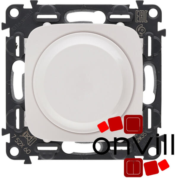 Valena Allure - dimmer burkolattal Valena In'Matic szerelvény műanyag borítású fém süllyesztőperemmel Valena Allure kerettel szerelhető fel Burkolattal Festékv édő burkolattal ellátva A termékkép az összeszerelt szerelvényt ábrázolja, a termékeket részekre csomagolva külön cikkszámon számlázzuk és szállítjuk (In'Matic szerelvény + burkolat) Forgatógombos fényerősza
