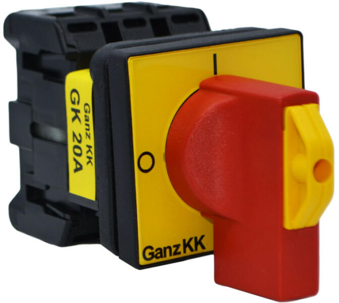 GANZ GK20A T203/04 E vészleállító kapcsoló / nyitott / mellső felerősítés / 3p / 20A (610-0202-306)