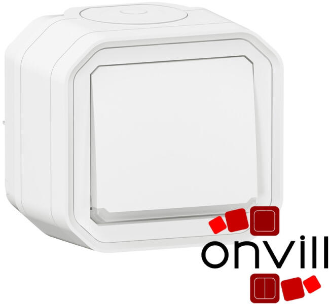 Plexo 55 - egypólusú (101-es) nyomó (NO)burkolattal, jelzőfénnyel Plexo 55 mechanizmus burkolattal és dobozzal Összeszerelt változat Egypólusú nyomó 10 A - 250 V~ Rugós vezetékbekötés 230 V~-os lámpával, a lámpát külön be kell kötni Falon kívüli Plexo 55 fehér Csatlakozás: Rugós vezetékbekötés Kábel csupaszítási hossz: 12 mm Vezetékméret: max. 2.5 mm2 Hajlékony