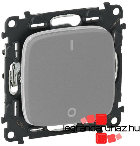 Valena Allure - kétpólusú (102-es) kapcsoló Valena In'Matic szerelvény műanyag borítású fém süllyesztőperemmel Valena Allure kerettel szerelhető fel Burkolattal Festékv édő burkolattal ellátva A termékkép az összeszerelt szerelvényt ábrázolja, a termékeket részekre csomagolva külön cikkszámon számlázzuk és szállítjuk (In'Matic szerelvény + burkolat) Kétpólusú k