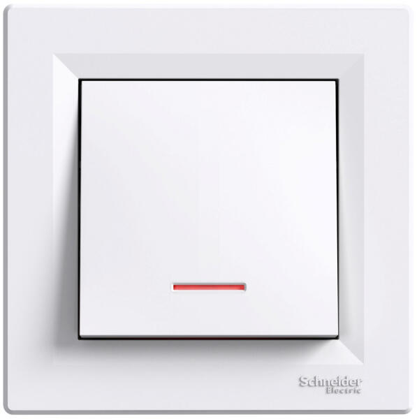 Váltókapcsoló jelzőfénnyel IP44 10 AX - 250 V~ Rugós vezetékbekötés Alacsony fogyasztású (0,125 mA) LED lámpával szállítva (764526) Fehér Suno - IP44-es váltókapcsoló (106), alternatív kapcsoló, jelzőfénnyel, burkolattal Mechanizmusok fém süllyesztőperemmel és billentyűvel együtt szállítva Rögzítés csavarok vagy körmök segítségével A jelzőfény fehéren vil