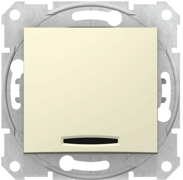 SEDNA Egypólusú nyomó, kék jelzőfénnyel, rugós bekötés, 10A, bézs, keret nélkül Névleges áram (In)=10A Névleges feszültség (Un)=250V-ig Maximális teljesítmény (P)=2300W Védettség:IP20 Áramköri csatlakozók: csavar nélküli- rugós típusok Csatlakoztatható vezetéktípusok: merev és hajlékony egyaránt Vezetékcsupszítási hossz:13mm A látható műanyagalkatrészek an