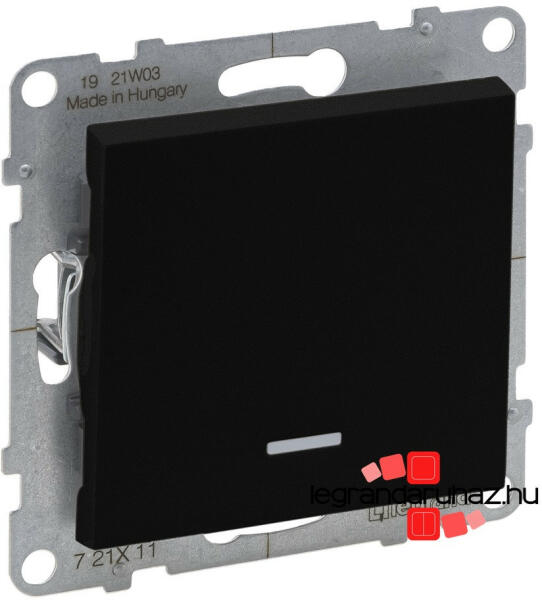 Egypólusú kapcsoló ellenőrzőfénnyel IP44 16 AX - 250 V~ Rugós vezetékbekötés Alacsony fogyasztású (2,5 mA) LED lámpákkal szállítva (764521) Fekete Suno - IP44-es egypólusú (101) kapcsoló, ellenőrzőfénnyel, burkolattal Mechanizmusok fém süllyesztőperemmel és billentyűvel együtt szállítva Rögzítés csavarok vagy körmök segítségével A jelzőfény fehéren világí