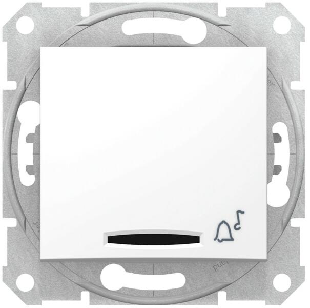 SEDNA Egypólusú nyomó, kék jelzőfénnyel, csengőjellel, rug. 10A, fehér, keret nélkül Névleges áram (In)=10A Névleges feszültség (Un)=12V-ig Maximális teljesítmény (P)=120W Védettség:IP20 Áramköri csatlakozók: csavar nélküli- rugós típusok Csatlakoztatható vezetéktípusok: merev és hajlékony egyaránt Vezetékcsupszítási hossz:13mm A látható műanyagalkatrészek a