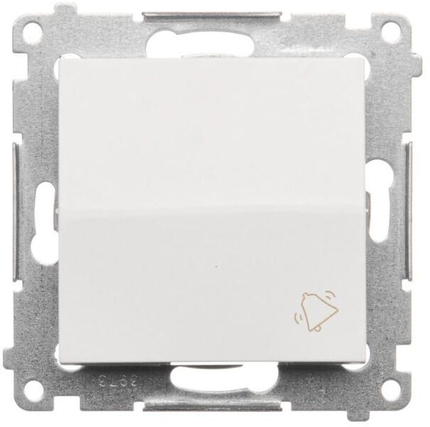 Gombos kapcsoló "csengő" (modul) 10AX 250V, gyorscsatlakozó, fehér színű Specifikáció: Sorozat: Simon 54 prémium Termék neve: Nyomógombos kapcsoló "csengő" Színe: 1: Fehér Típus Maximális áram: 10 A Feszültség: 250 V AC A csatlakozók típusa IP-védelem: IP20 / IP44 Használjon DU kerettömítést az IP44 ellenállási osztály eléréséhez... Piktogram Anyagtípus: Halogénm