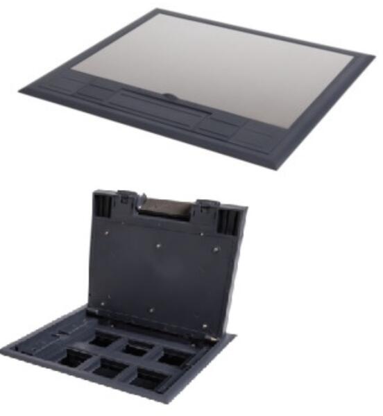KANLUX BIURO+ 04-0012-100 Műanyag padlódoboz 6xM45, 225x245mm, ezüst (28301) Műszaki adatok: Névleges feszültség: 250V/AC Névleges frekvencia: 50Hz Névleges áram: 16A Modulok száma: 12 Beszerelés helye: szerelés: padlóba süllyesztett IP védettség: IP20 Áramütés elleni védelmi osztály: II Méret: 110 x 225 x 245 mm Súly: 2136g Szín: rozsdamentes acél
