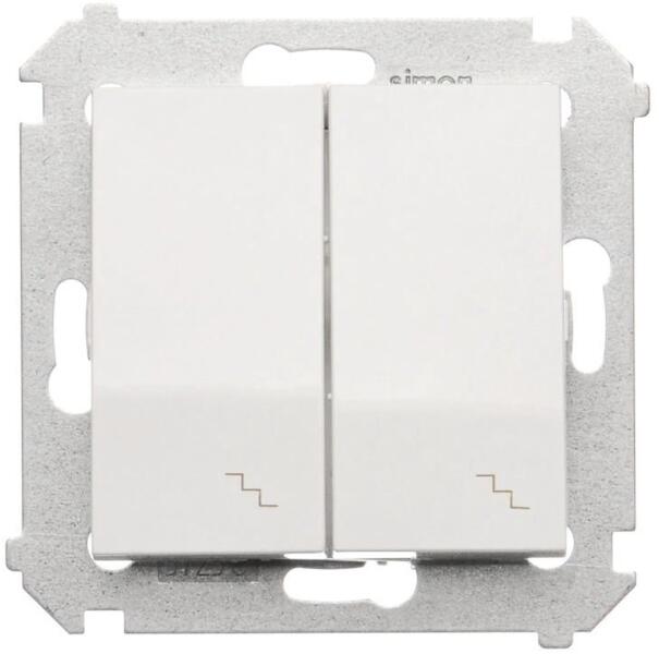 Lépcsőkapcsoló dupla LED háttérvilágítással (modul) 10AX 250V, csavaros csatlakozók, fehér Specifikáció: Sorozat: Simon 54 prémium Termék neve: Lépcsőházi dupla kapcsoló LED háttérvilágítással Színe: 1: Fehér Típus: modul Maximális áram: 10 A Feszültség: 250 V AC Csatlakozók típusa: csavaros csatlakozók IP-védelem: IP20 / IP44 Használjon DU kerettömítést az IP