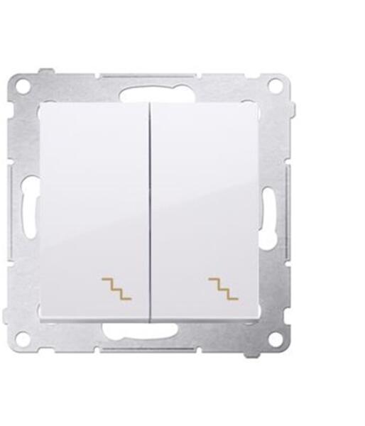 Dupla lépcsőházi kapcsoló (modul) 10AX 250V, gyorscsatlakozó, fehér Specifikáció: Sorozat: Simon 54 prémium Termék neve: Dupla lépcsőházi kapcsoló Színe: 1: Fehér Típus Maximális áram: 10 A Feszültség: 250 V AC A csatlakozók típusa IP-védelem: IP20 / IP44 Használjon DU kerettömítést az IP44 ellenállási osztály eléréséhez... Piktogram Anyagtípus: Halogénmentes m
