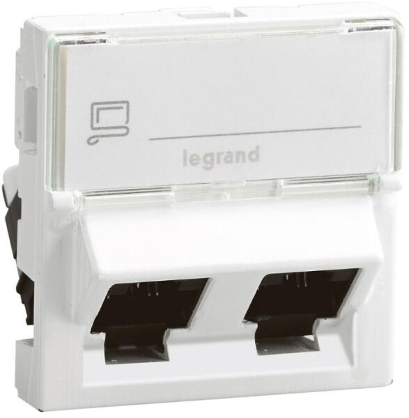 Leg. 076504 Program Mosaic RJ45 informatikai csatlakozóaljzat, 2xRJ 45 árnyékolatlan (UTP) Cat6, 2 modul széles, 45 fokban döntött aljzattal, fehér