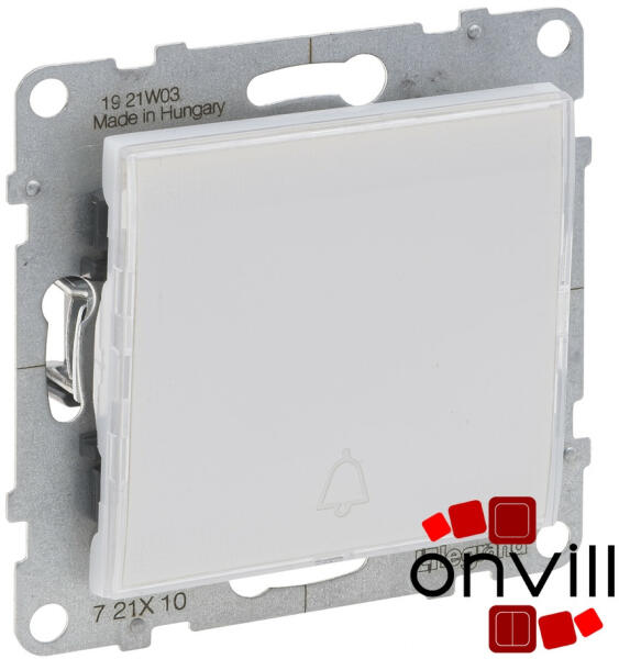 Egypólusú nyomó címketartóval, jelzőfénnyel IP44 6 A - 250 V~ Rugós vezetékbekötéssel Alacsony fogyasztású (0,125 mA) LED lámpával szállítva (764526) Átlátszó címketartó három különböző színű betétlappal Fehér Suno - IP44-es egypólusú nyomó, jelzőfénnyel, burkolattal Mechanizmusok fém süllyesztőperemmel és billentyűvel együtt szállítva Rögzítés csavar