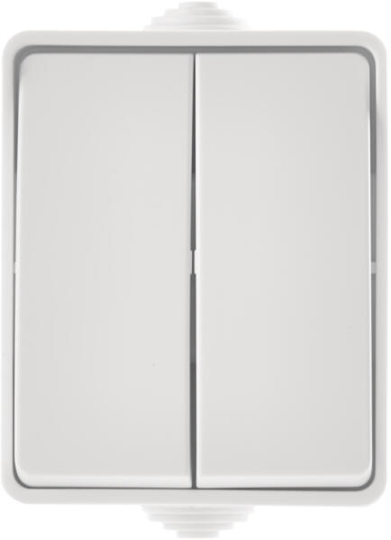 Kétpólusú kapcsoló : Más néven kétsarkú kapcsoló. Olyan helyeken alkalmazzuk, ahol a fogyasztó mindkét pólusát bontani kell kikapcsoláskor. Pl. időszakosan párás nedves helységekben (pl. fürdőszoba). A nulla és fázis vezetőt is bontani kell életvédelmi okokból. Működtető feszültség: 250V AC, 50/60Hz IP védettsége: IP44 Névleges áramerősség: 10A