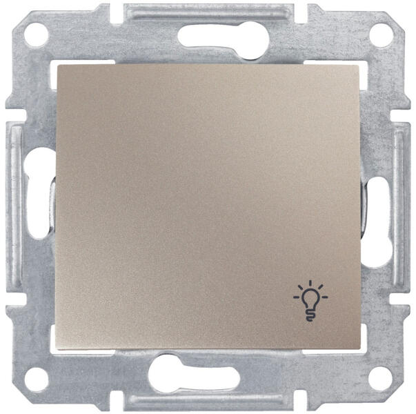 SEDNA Egypólusú nyomó lámpajellel, rugós bekötés, 10A, IP44, titánium, keret nélkül Névleges áram (In)=10A Névleges feszültség (Un)=250V-ig Maximális teljesítmény (P)=2300W Védettség:IP44 Áramköri csatlakozók: csavar nélküli- rugós típusok Csatlakoztatható vezetéktípusok: merev és hajlékony egyaránt Vezetékcsupszítási hossz:13mm A látható műanyagalkatrészek