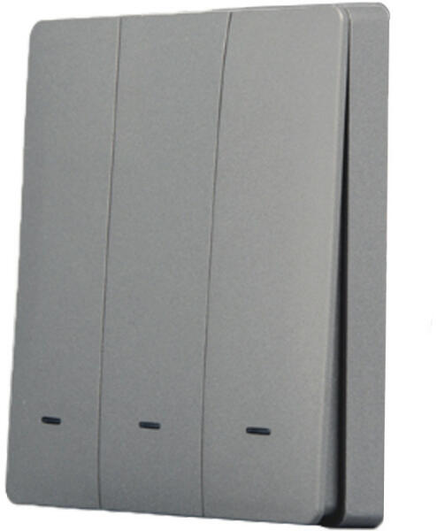 Ez az ELŐLAP a SmartWise (WiFi+RF) BL és BLN okoskapcsolókhoz, a (Zigbee) BL-ZB és BLN-ZB sorozatú okoskapcsolók, valamint a BRF sorozatú 433MHz-es vezeték nélküli RF kapcsolók TARTOZÉKA. Ez a szürke színű, fizikai gombos előlap 3 gombos termékváltozata. Ez az előlap a SmartWise (WiFi+RF) BL és BLN okoskapcsolókhoz, a (Zigbee) BL-ZB és BLN-ZB sorozatú okoskapcsolók, valamin