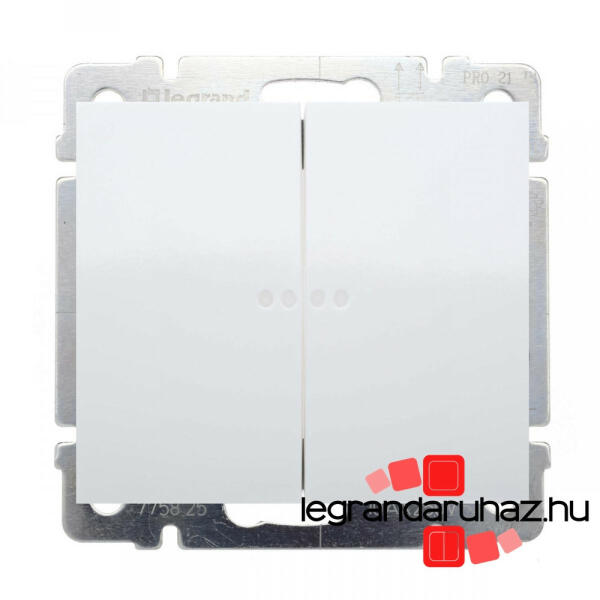 Céliane - kettős váltóérintkezős (106) nyomó jelzőfénnyel A csomag tartalma: Céliane körmös rögzítőperem Céliane mechanizmus Céliane burkolat Céliane jelzőfény A termékkép az összeszerelt szerelvényt ábrázolja, a termékeket részekre csomagolva külön cikkszámon számlázzuk és szállítjuk (szerelvény + burkolat + led) Kettős egypólusú nyomó 10 AX – 230 V~ Rug