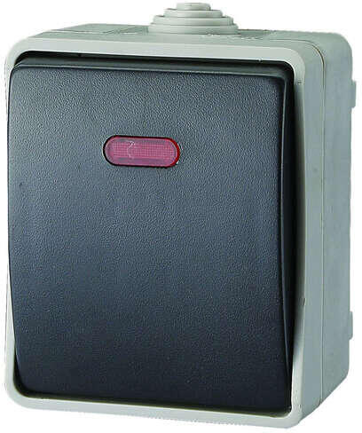 típus : nyomó billenők száma : 1 db szerelés : falon kívüli névleges áram : 10A IP védelem : IP54 szín : szürke jelzőfénnyel : igen méret : 92 x 65 x 55 mm