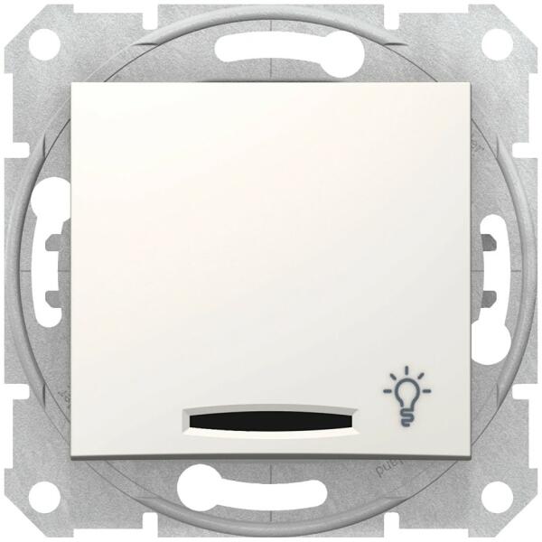 SEDNA Egypólusú nyomó, kék jelzőfénnyel, lámpajellel, rugós bekötés, 10A, krém, keret nélkül Névleges áram (In)=10A Névleges feszültség (Un)=250V-ig Maximális teljesítmény (P)=2300W Védettség:IP20 Áramköri csatlakozók: csavar nélküli- rugós típusok Csatlakoztatható vezetéktípusok: merev és hajlékony egyaránt Vezetékcsupszítási hossz:13mm A látható műanyaga