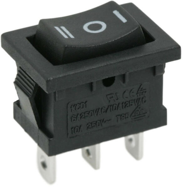 Billenő kapcsoló 1 áramkör 6 A - 250 V ON - OFF - ON I-O-II jelzéssel Beépíthető, fekete, 3 állású billenőkapcsoló. Széles körben használt, ideális lehet, műszaki gépek, elektromos eszközök kezelőpaneljén. Középső nyitott állás, és két szélső zárt jellemzi. 1 áramkör 6 A - 250 V ON - OFF - ON I - O - II jelzés Kapcsoló típusa:SPDTÁramerősség:6 A (10 A) / 25