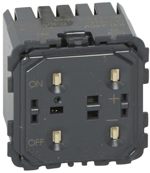 Céliane - kettős váltókapcsoló (106+6, 108) jelzőfénnyel A csomag tartalma: Céliane hosszított 37mm-es körmös rögzítőperem Céliane mechanizmus Céliane burkolat Céliane jelzőfény A termékkép az összeszerelt szerelvényt ábrázolja, a termékeket részekre csomagolva külön cikkszámon számlázzuk és szállítjuk (szerelvény + burkolat + led) Kettős váltókapcsoló 10 AX