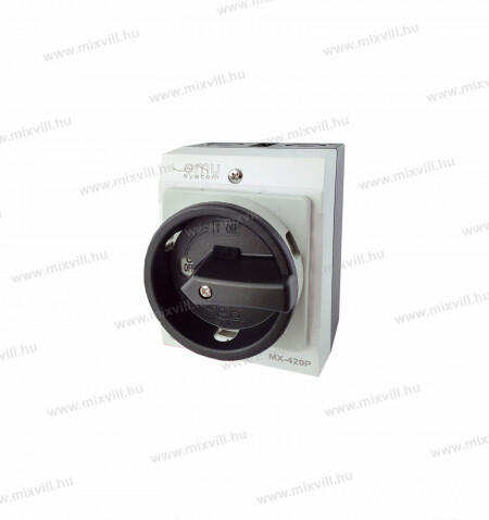 OMU system MX-420P 4 pólusú 20A tokozott IP65 ipari ki-be kapcsoló 4x20A forgócsapos lakatolható Kikapcsolt állapotban 3 lakattal lakatolható. Pólusszám: 4 Terhelhető áramerőség Ith: 20A Teljesítmény: 4kW IP védettség: IP65 Névleges működési feszültség: max 400V AC 50/60Hz Tömszelencék mérete: M20 Megfelel az alábbi szabványoknak: EN 60947-1, EN-60947-3, EN 60947-5-1, E