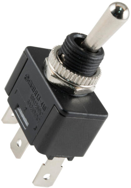 Somogyi Elektronic Billenőkapcsoló, 250V, 1ák, karos, váltó (ST 21) Termékinform áció: A ST 21 billenőkapcsoló 2 állású és 1 áramkör működtetésére alkalmas. Max. terhelhetősége: 250 V~ / 6 A Mérete: 29 x 16 mm Beépítési mérete/nyílása: ø11,5 mm Beépítési mélysége saruval: 28,2 mm Saruk száma: 3