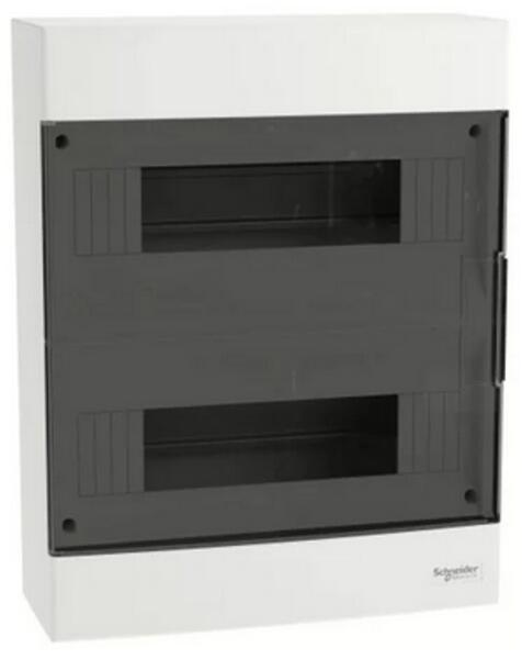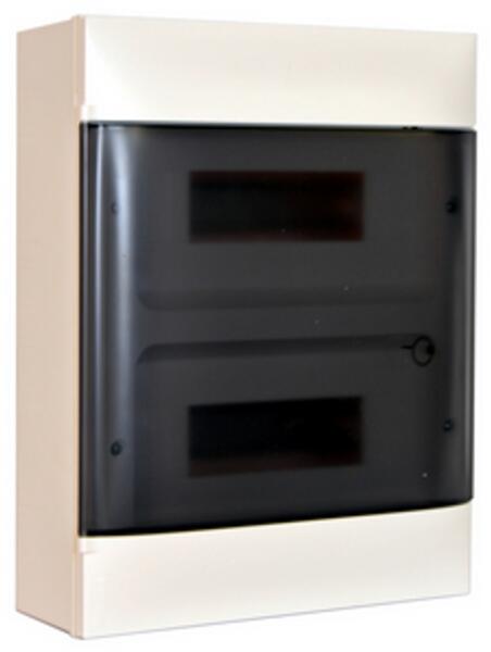 Akció a készlet erejéig! Felületre szerelhető biztosító tábla, 36db 17,5mm-es moduláris eszköz részére. Tartalmaz: 35mm-es szabványos TS sínt, az eszközök rögzítésére, füstszínű ajtót, PE N síneket Méretek: 536 mm x 328 mm x 108 mm ( magasság x szélesség x mélység ) Megfelel az IEC61439-3 szabványnak. II. érintésvédelmi osztály 650°C-ig önkioltó műanyag falo
