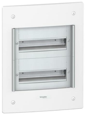 Szekrény típusa: Elosztószekrény. Szélesség: 396 mm. Magasság: Fal: 480 mm. Külső: 510 mm. Mélység: Fal: 86 mm. Külső: 21 mm. Soronként 18 mm-es modulok száma: 13. Vízszintes sorok: 2. Elektromos szigetelési osztály: III. osztály, kettős szigetelés. Tartozékok: 2 x sorkapocsblokk 1 x azonosító címke 1 x jelölő készlet 1 x üres fedlap csík Ajtó nélkül. Szekrény sze