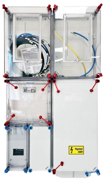 HENSEL HB33KHF4-U 1 és 3 fázisú 2 mérőhelyes fogyasztásmérő szekrény egyedi mindennapszaki (80 A-ig) és H-tarifás (63 A-ig) méréshez (1091018) HB33KHF4-U két mérőhelyes fogyasztásmérő szekrény földkábeles méretlen oldali és földkábeles, vagy szabadvezetékes mért oldali csatlakozással, mindennapszaki és H-tarifás méréshez. Ez a kialakítás annyiban különbözik a