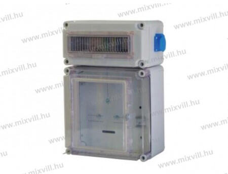 Méret: 300 x 450 x 170 mm Egyfázisú fogyasztásmérőhöz Felső elhelyezésű kismegszakító szekrénnyel 1 db 12 modulos, csapófedeles ablakkal Maximum 12 db kismegszakító kezeléséhez 1 db 288 mm hosszú, TS35, magasított kalapsínnel PE és N sorkapoccsal A szekrényen 2 db 3P 16A/230V dugalj található