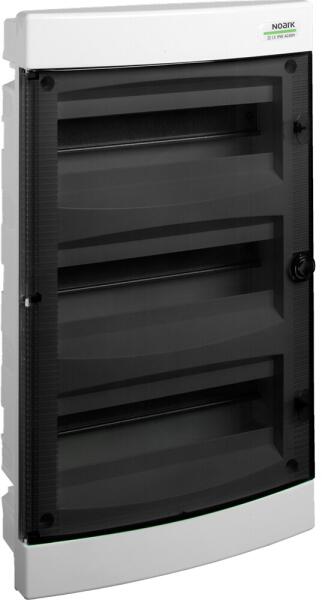 Noark 101516 elosztószekrény, átlátszó ajtó, IP40, 3 soros, 3x12 modul, műanyag ■ NFP beágyazott doboz■ IP40 védelmi fokozat■ 8-54 modul■ 1-től 3 sorig■ Átlátszó vagy fehér ajtó A PNF süllyesztett szekrényt elsősorban háztartási alkalmazásokra szánják. A modell süllyesztett beépítésre alkalmas. A szállítás tartalmazza a zárható ajtót, a DIN-sínt, az N +