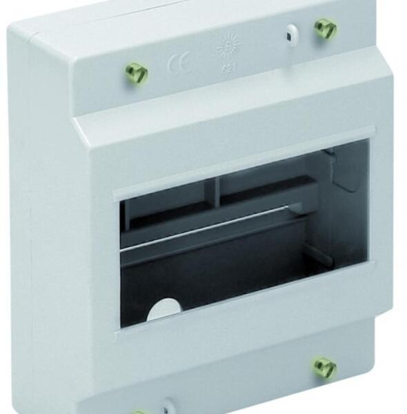 Felületi elosztó doboz 6 elemmel. Fehér színű. Külső méretek 130 x 145 x 58 mm. Lezárható.