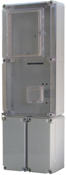 CSATÁRI PLAST PVT EON 3060 FSK2 - AM E. ON Háromfázisú mérőhely, 300x900x170mm (CSPEA 36332200) Termék információ: E. ON Háromfázisú mérőhely PVT3060FSK2 1-3F fogy. mérő EM ablakkal, kulcsos zárral, kábelfo+elmenő+sk, alsó maszkkal 300x900x170mm. Háromfázisú fogyasztásmérőhöz, 2 db alsó elhelyezésű, 150x300x170mm-es kábelfogadó tokozattal, melyekben 1-1 db 138 mm ho