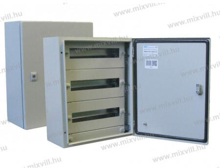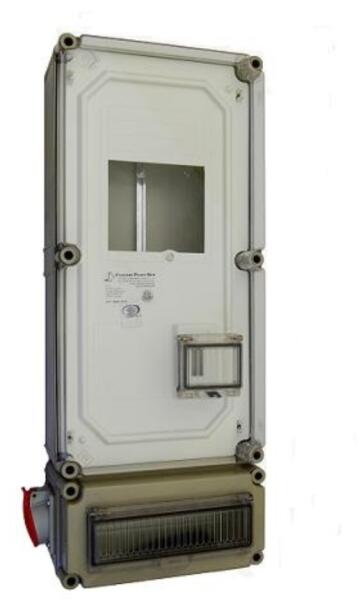 Méret: 300 x 750 x 170 mm Háromfázisú fogyasztásmérőhöz Felső elhelyezésű kismegszakító szekrénnyel 1 db 12 modulos, csapófedeles ablakkal szerelve Maximum 12 db kismegszakító kezeléséhez 1 db 288 mm hosszú, TS35, magasított kalapsínnel PE és N sorkapoccsal A szekrényen 1 db 3P 16A/230V, 1 db 5P 16A/400V dugalj