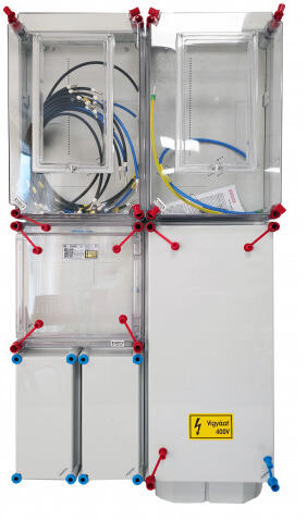 HENSEL HB33KHF-U 1 és 3 fázisú 2 mérőhelyes fogyasztásmérő szekrény egyedi mindennapszaki (80 A-ig) és H-tarifás (63 A-ig) méréshez 1091017 A HENSEL HB33KHF-U egy 1 és 3 fázisú, két mérőhelyes fogyasztásmérő szekrény, amely mindennapszaki (80 A) és H-tarifás (63 A) méréshez alkalmas. Ez a szekrény különösen hasznos olyan alkalmazásokhoz, ahol földkábeles csatlakoz