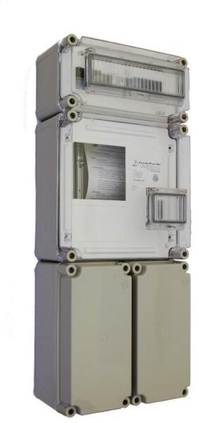 CSATÁRI PLAST PVT 3030 FO2 – F 12 ÁK Egyfázisú mérőhely, 300x750x170mm (CSP 33411105) Termék információ: Egyf zisú mérőhely PVT3030FO2-F12ÁK 1F fogy kábelfo+kism 300x750x170mm. Egyfázisú fogyasztásmérőhöz, 2 db alsó elhelyezésű, 150x300x170 mm-es kábelfogadó és elmenő szekrény földkábeles csatlakoztatáshoz, melyek 1-1 db 138 mm hosszú, TS35 kalapsínt tartalmaznak