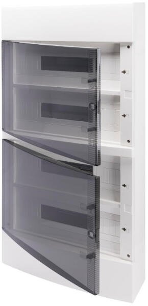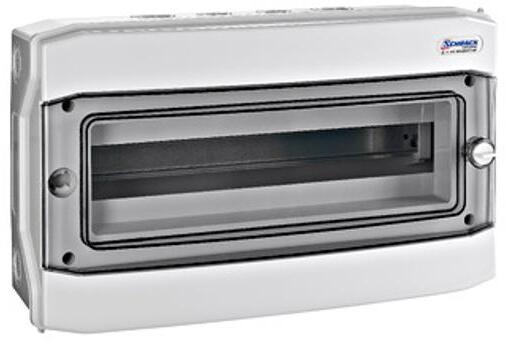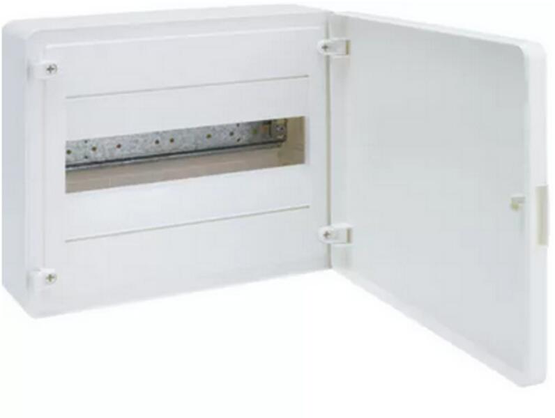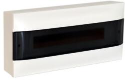 Felületre szerelhető biztosító tábla, 18db 17,5mm-es moduláris eszköz részére. Tartalmaz: 35mm-es szabványos TS sínt, az eszközök rögzítésére, füstszínű ajtót, PE N síneket Méretek:236 mm x 436 mm x 107 mm ( magasság x szélesség x mélység ) Megfelel az IEC61439-3 szabványnak. II. érintésvédelmi osztály 650°C-ig önkioltó műanyag falon kívüli doboz