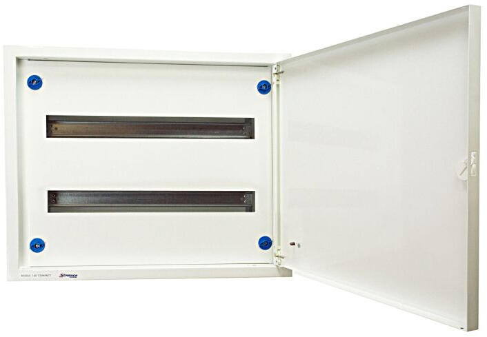 A süllyesztett fémajtós modulos lakáselosztók zárhatóak is. IDE kattintva rendelhet, RB-13 kulcsos zárat. 850°C-ig ellenálló műanyag alj IP védettség: ajtó nélkül IP30, ajtóval IP40 Érintésvédelemi osztály: II. Beépíthető készülékek max. szigetelési feszültsége: 400 V~ Fém keret és fém ajtó Színe: RAL9016 Gipszkarton falba beépíthető Föld-nulla sínnel, kül