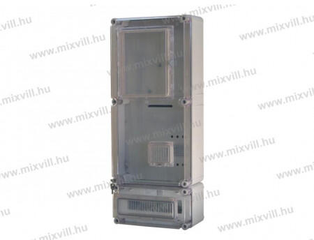 Háromfázisú fogyasztásmérőhöz Alsó elhelyezésű kismegszakító tokozattal 1 db 12 modulos csapófedeles ablakkal Maximum 12 db kismegszakító kezeléséhez 1 db 288 mm hosszú TS35 magasított kalapsínnel PE és N sorkapcsokkal