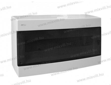 A modulos lakáselosztók zárhatóak is. IDE kattintva rendelhet, RB-13 kulcsos zárat. Termék jellemzők: Tágasabb belső hely, mint a hasonló termékeknél. Megfelel a 960°-os izzószálastesztnek Class II Környezeti hőmérséklet: -15°C ... + 60°C RAL9016 Névleges áramerősség: 63A - Modulszám: 18 - Mérete: szélesség: 389 mm x magasság: 225 mm x mélység: 97 mm - Megfordíthat