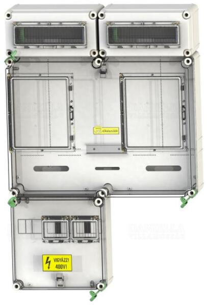 PVT 6075 Á-V Fm 80A-SZ ÁK fogyasztásmérő szekrény, 1 vagy 3 fázisú általános és vezérelt mérők számára, szabadvezetékes, földelősínes modullal 2 db 1530 ÁK 12 NÁF elosztóval, 80A mindennapszaki és 80A vezérelt /Rendszerengedély azonosító: CSP21. E023(PVT 6075 Á-V Fm 80-SZ)-Sz-M63.80A-V63.80/