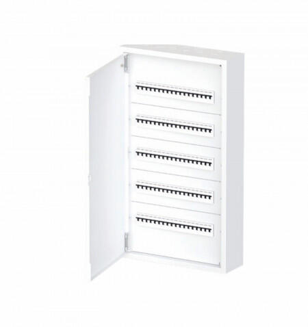 Omu system FEF90RBS 90 modulos (5x18) falon kívüli fém elosztószekrény fehér IP30 RAL9003 Kulcsos zár beépítési lehetőség Az ajtó bal, vagy jobb oldalra történő nyitási iránya megváltoztatható a keret szétszerelése nélkül Modulszám: 90 modul (5x18) Méret: 450x800x136mm IP védettség: IP30 Szín: RAL9003 fehér Környezeti hőmérséklet: -15... +60°C Megfelel a IEC 6067