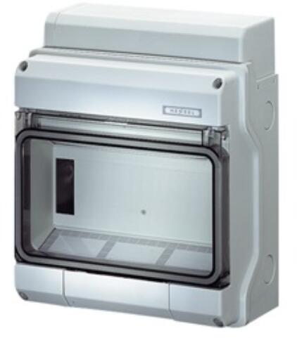 Kiselosztó PE/N sínnel rugós műanyag 1x 9M falonkívüli szürke IP65 átlátszó ajtó KV 9109 Hensel