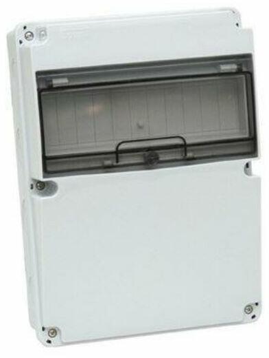 Méret: 300 x 750 x 170 mm Háromfázisú fogyasztásmérőhöz Alsó elhelyezésű kismegszakító szekrénnyel 1 db 12 modulos, csapófedeles ablakkal szerelve Maximum 12 db kismegszakító kezeléséhez 1 db 288 mm hosszú, TS35, magasított kalapsínnel PE és N sorkapoccsal A szekrényen 1 db 3P 16A/230V, 1 db 5P 16A/400V dugalj 1 db 1P C16A, 1 db 3P C16A kismegszakító 1 db 4P 40A 30mA Fi-r