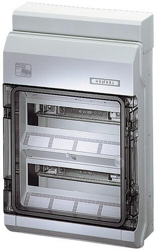 Hensel KV PC 9224 Időjárásálló KV-kiselosztó 24 osztásegység: 2 x 12 x 18 mm 2 soros Kábelbevezetés integrált rugalmas tömítőmembránokkal PE/N-enként darabszám x keresztmetszet 6 x 25 mm2, 24 x 4 mm2 CU, FIXCONNECT ® rugós kapocstechnika, a kapocstechnikát ld. a Műszaki adatoknál N kapocs, 4 különböző potenciállal Beltéri, ill. védelem nélküli szabadtéri villamos sz