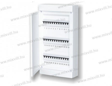 A modulos lakáselosztók zárhatóak is. IDE kattintva rendelhet, RB-13 kulcsos zárat. Termék jellemzők: Tágasabb belső hely, mint a hasonló termékeknél. Megfelel a 960°-os izzószálastesztnek Class II Környezeti hőmérséklet: -15°C ... + 60°C RAL9016 Névleges áramerősség: 63A- Modulszám: 36 - Mérete: szélesség: 275 mm x magasság: 510 mm x mélység: 95 mm - Megfordíthat