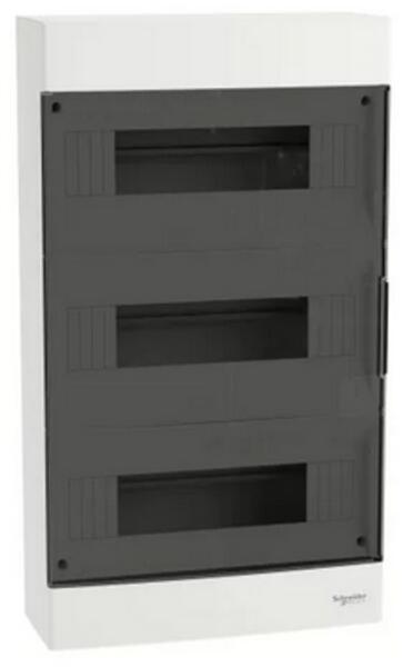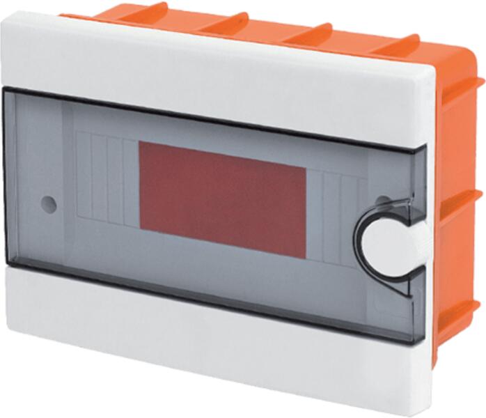 24 modulos kivitelben Föld vagy nulla sínnel Nyitható füstszínű polikarbonát ajtó Ellenálló narancsszínű, polisztirén elosztódoboz Öntapadós címke az áramkörök feliratozásához A kötődobozban sorkapcsok elhelyezhetőek Takarócsík a nem használt modulok elrejtéséhez Galvanizált acél DIN sín, a kivehető és állítható síntartóra szerelve IP védettsége: IP40 Mod